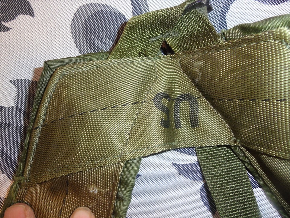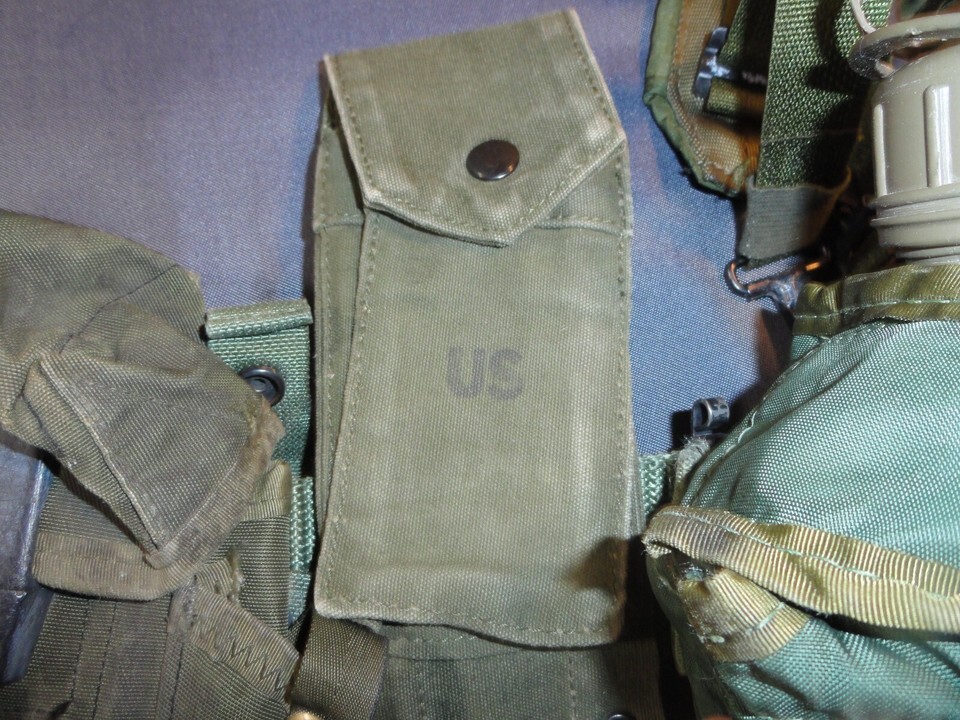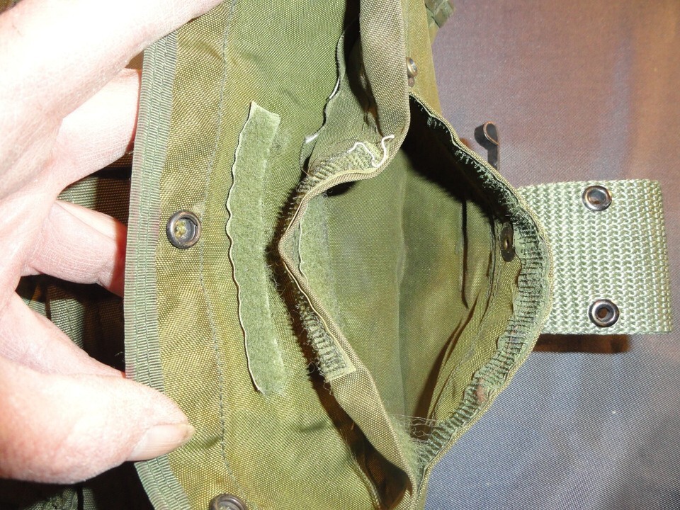 POUCHES AND ACCESSORIES SHOWS WEAR : I COULD EASILY WASH THIS WHOLE RIG, BUT I BELIEVE EVERY SCUFF, EVERY MARKING, EVERY SCRAPE IS A BATTLE SCAR FROZEN IN TIME. EVEN WHEN A SOLDIER, AIRMAN, MARINE, SAILOR WRITES THEIR NAME OR UNIT ON THEIR EQUIPMENT ITS A PIECE OF ART THAT LIVES FOREVER.