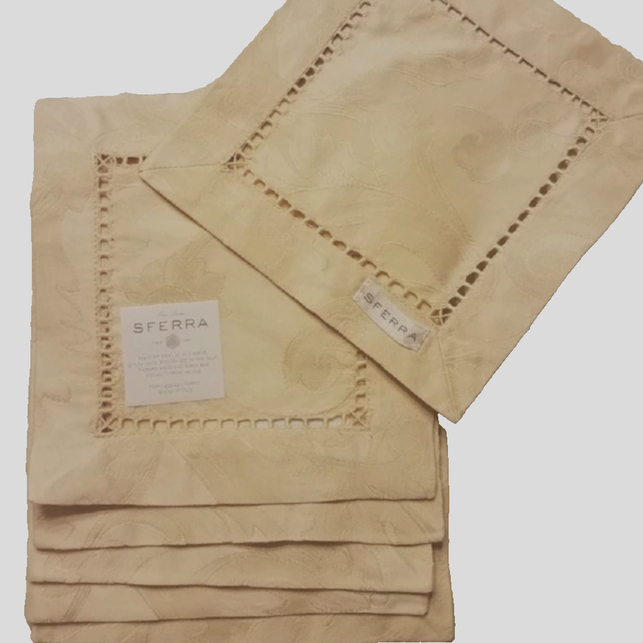 Sferra Acanthus Parchment Square Cocktail Napkins 6 PC. Egyptian Cotton 6x6" New