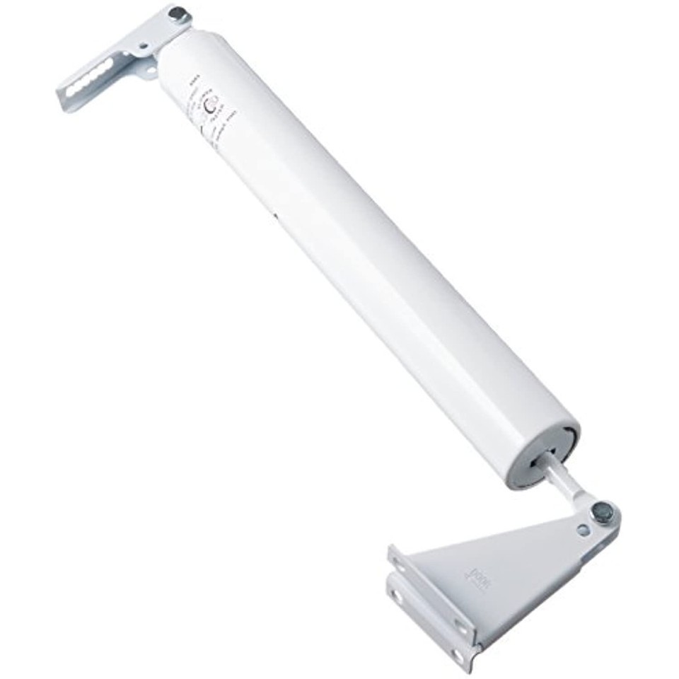V1339, white, heavy duty door closer, air controlled designed for use on out swinging wood or metal doors up to 1-3/8 inch thick, door closing speed is fully adjustable, 2 hole end plug allows closing force to be regulated, includes convenient hold open washer, Extended operating life as closer is permanently lubricated.
