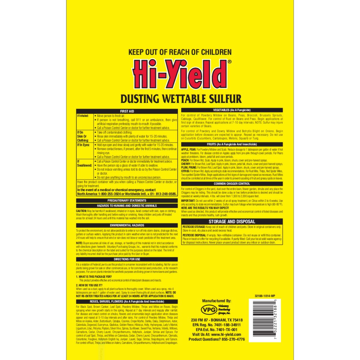 Hi-Yield Dusting Wettable Sulfur