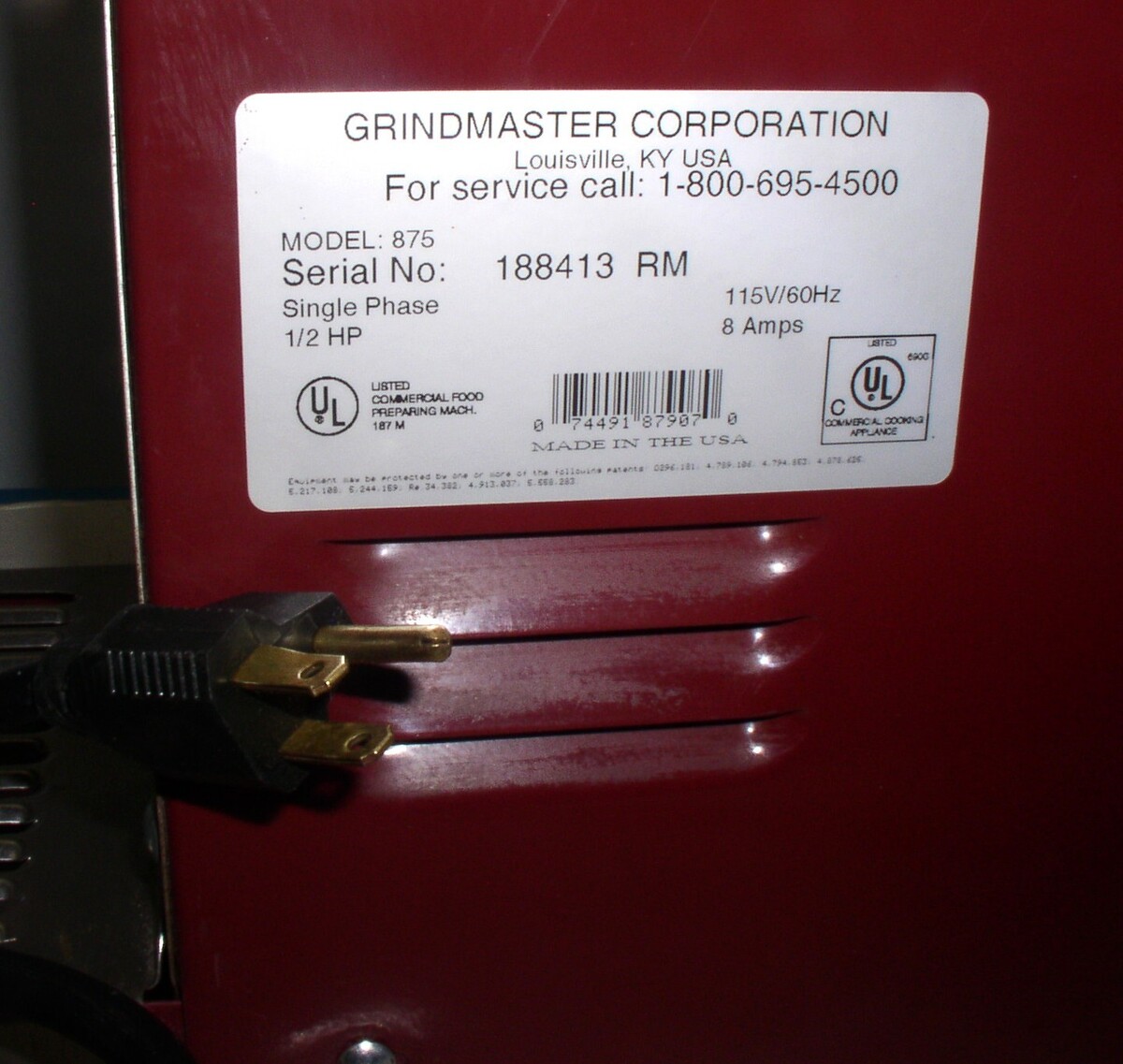GRINDMASTER 875 COMMERCIAL