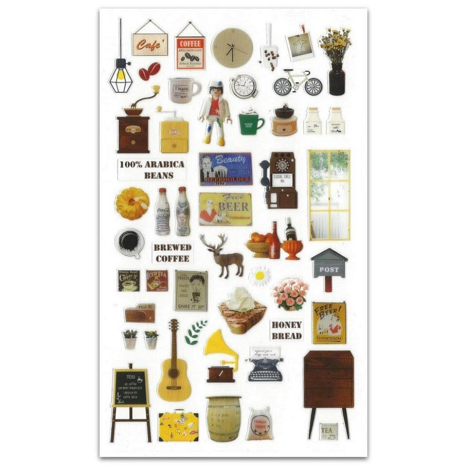 CUTE CAFE STICKERS Coffee House PVC Sticker Sheet Craft Scrapbook Seal Kawaii