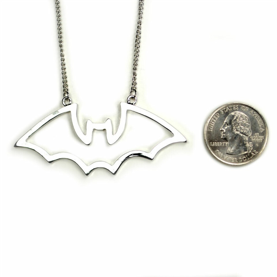 BAT NECKLACE Silver Metal Cutout Cutout Pendant Jewelry NEW Halloween Vampire