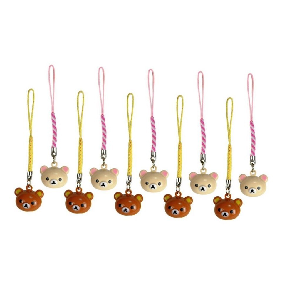 10 TEDDY BEAR BRASS BELL CHARM Rilakkuma Set of 10 Craft Cell Phone Strap Set