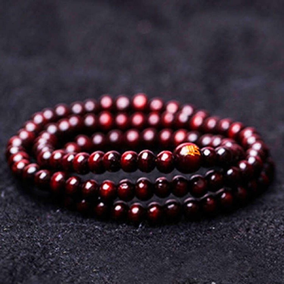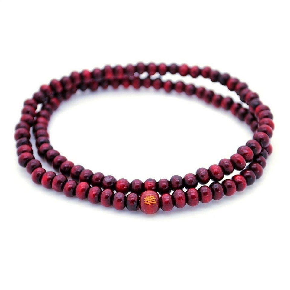 Stretch Wrap Mala Bracelet 108 6mm Buddha Red Wood Bead Buddhist Prayer Beads