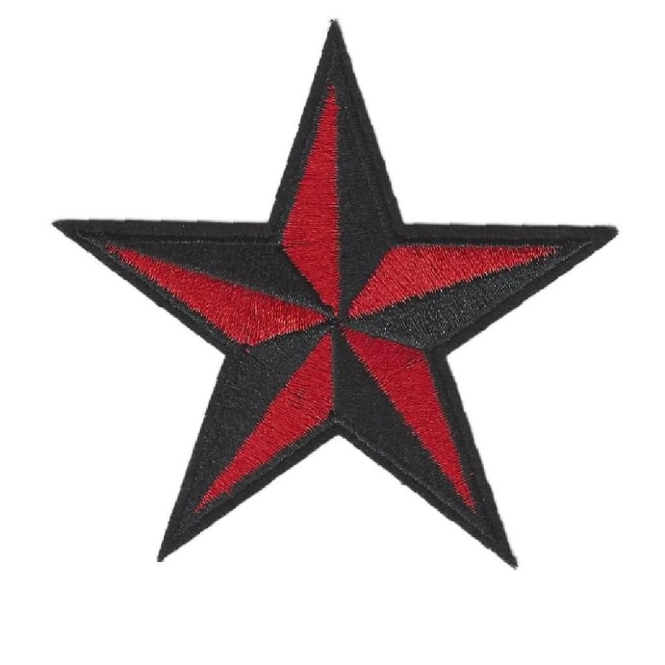 NAUTICAL STAR IRON ON PATCH 2.4" Red Black Tattoo Art Style Embroidered Applique