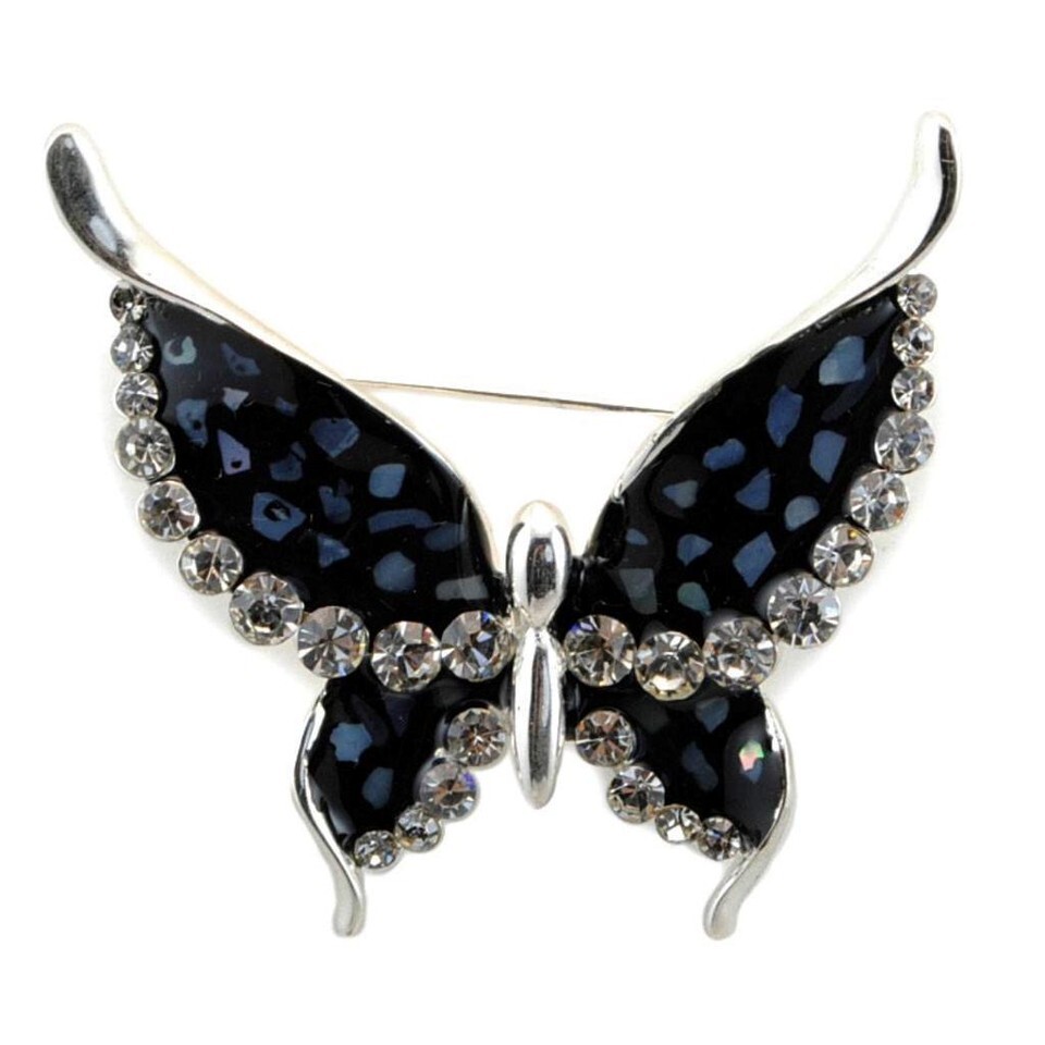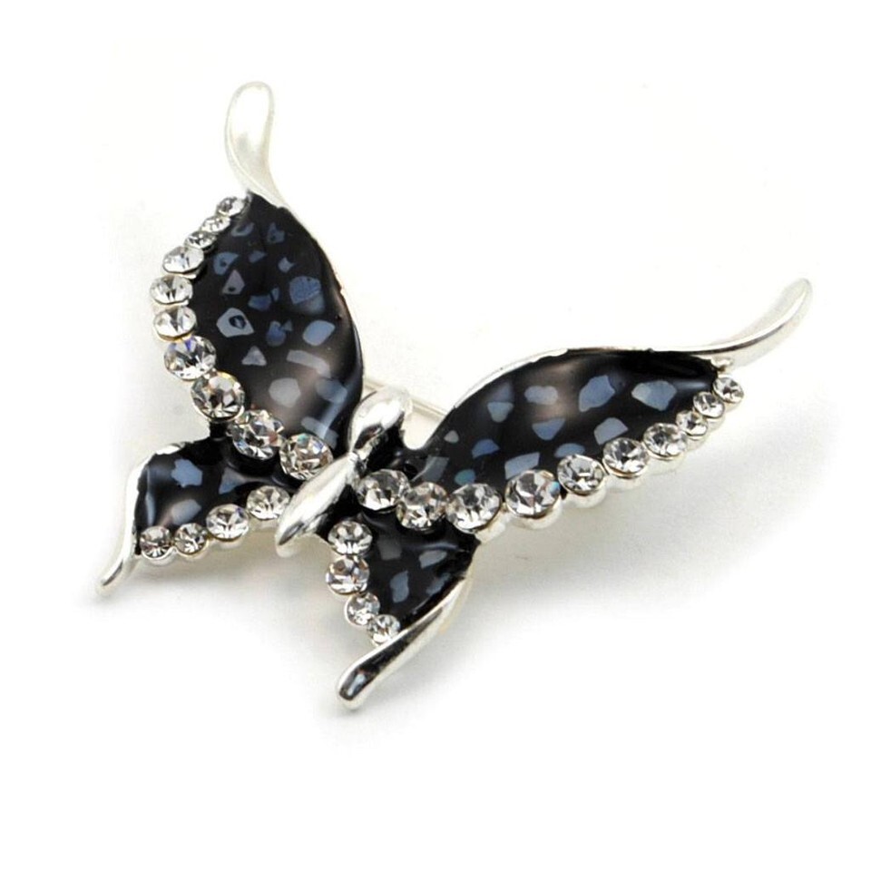 SPARKLING BUTTERFLY BROOCH Pin Crystal NEW Enamel Black Pink Blue HIGH QUALITY