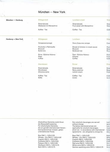 Lufthansa Airline Coach Class Menu 1968 and similar items