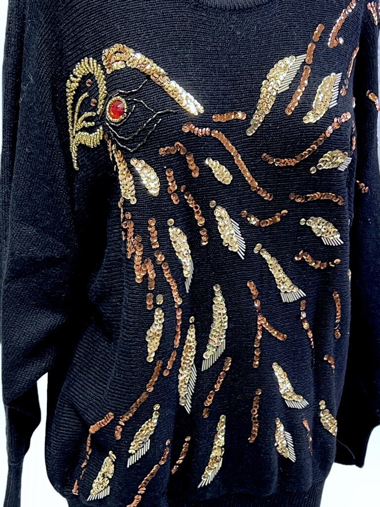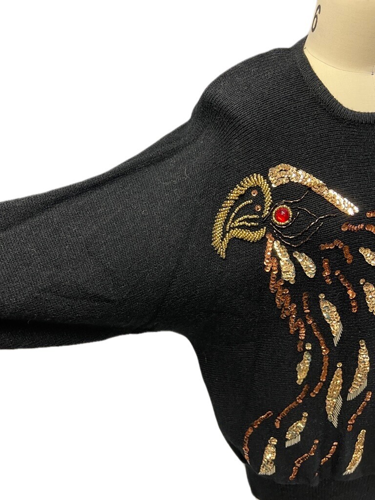 Vintage 1980s Angenie Sweater Batwing Big Shoulder Pads Bedazzled Bird Hong Kong