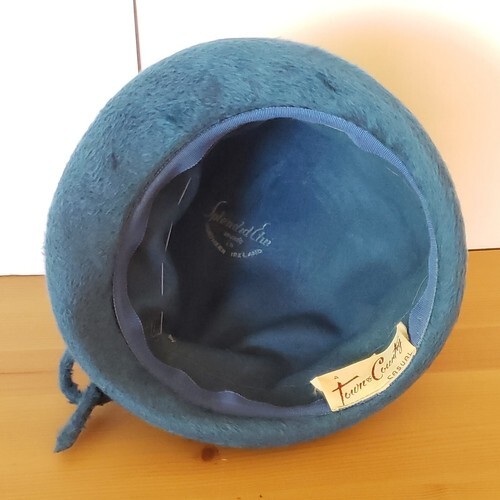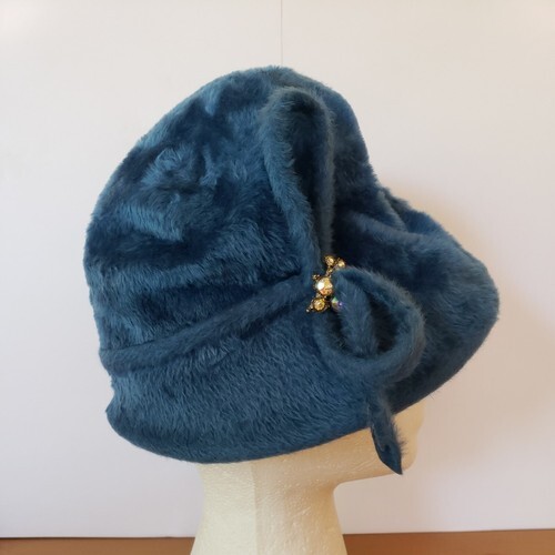 Angora Wool Flapper Hat Blue Cloche Splendid Etui Town Country Vintage Deco UK