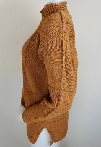 Vintage YarnWorks Sweater Womens S Mustard Brown Ramie Cotton Mock Neck HongKong
