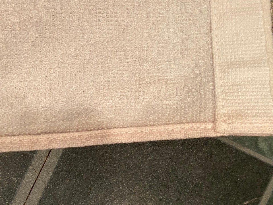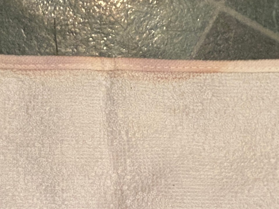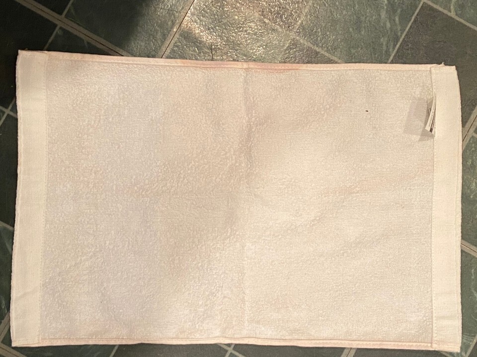 The sweat towels were giveaways thrown into the crowd at an event for the show so there is some staining on the back (Pictured)