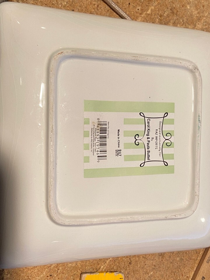 The ceramic dish is new with the tag on the back