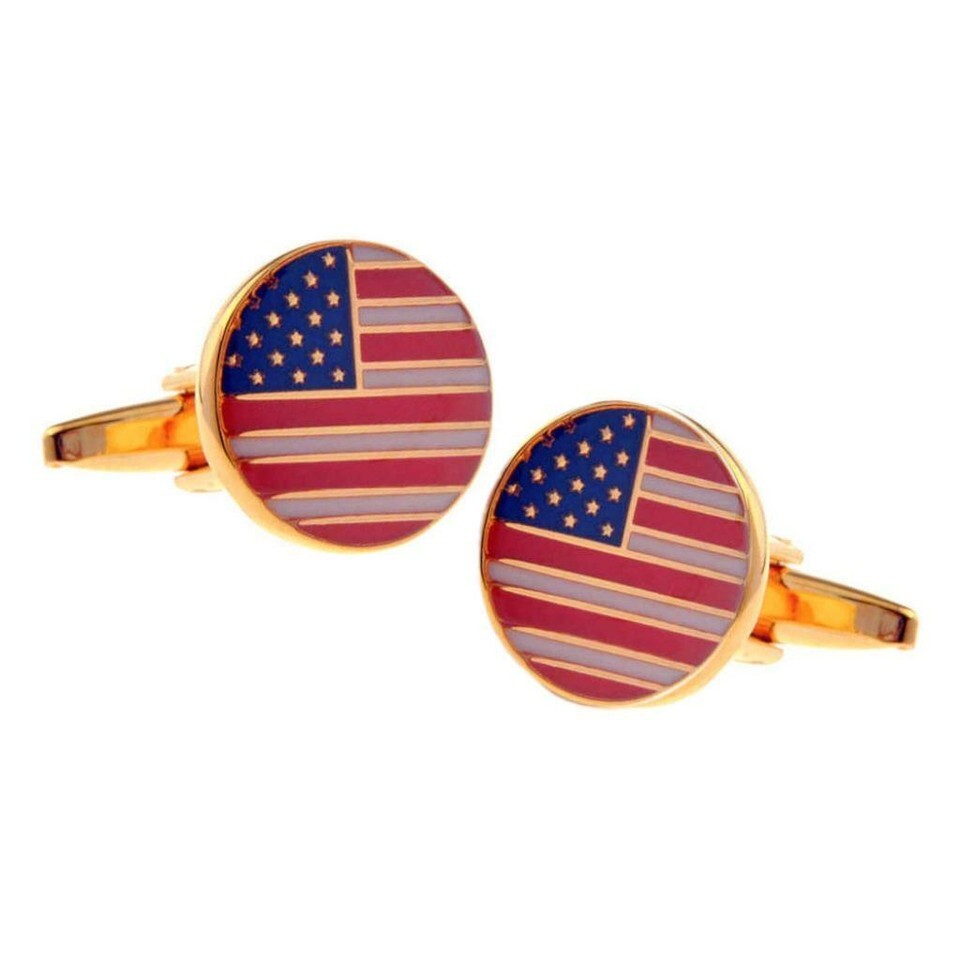 USA FLAG CUFFLINKS United States America American Patriotic Round NEW w GIFT BAG