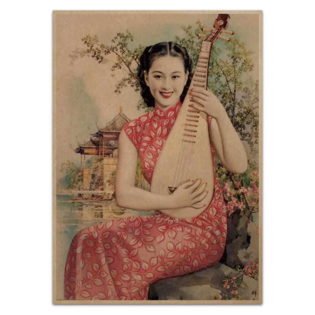 Girl with Pipa Poster Vintage Reproduction Print Music Shanghai Chinese Ad Art