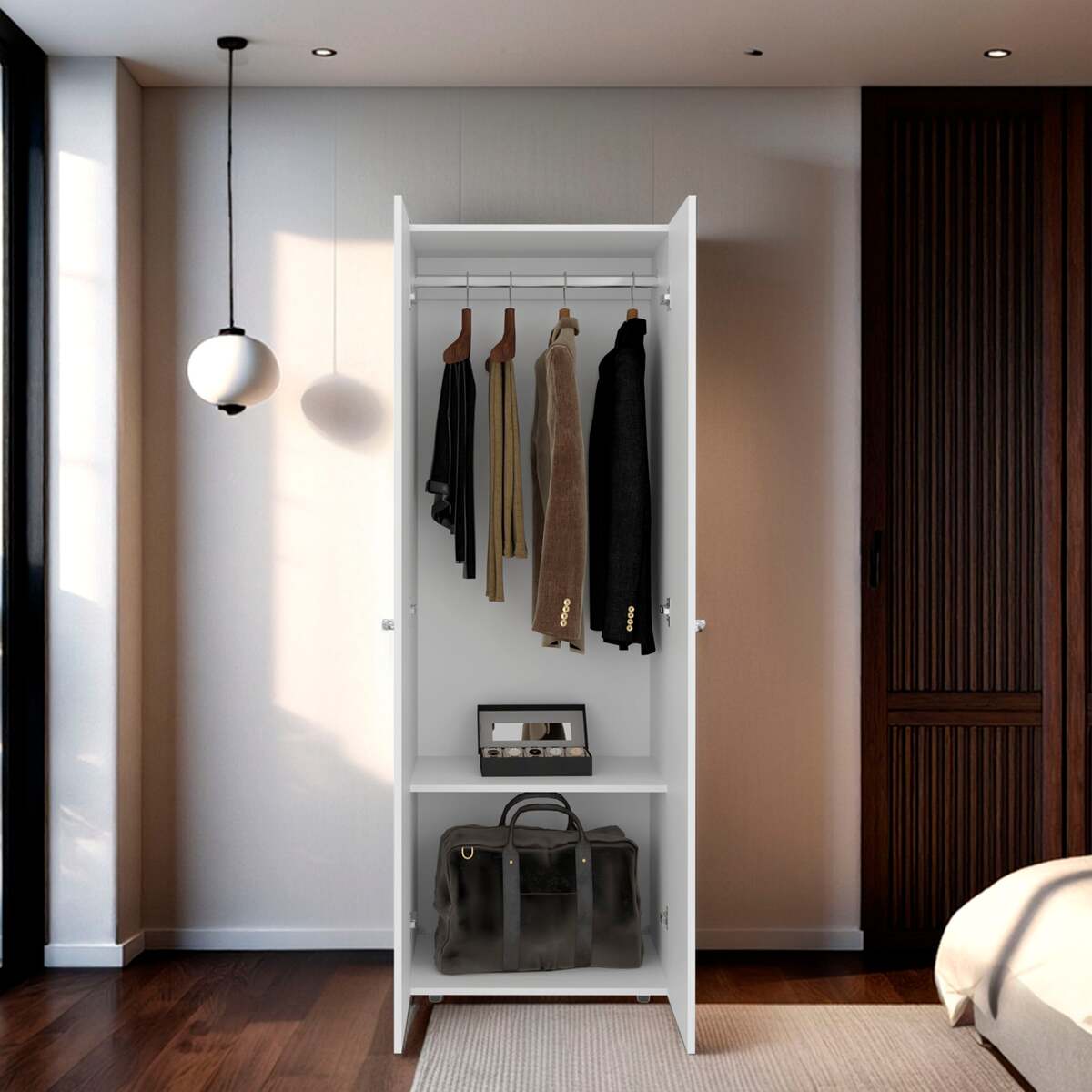 Spacious Interior: Includes a hanging rod and a lower shelf, ideal for organizing clothes, jackets, shoes, or storage boxes.
