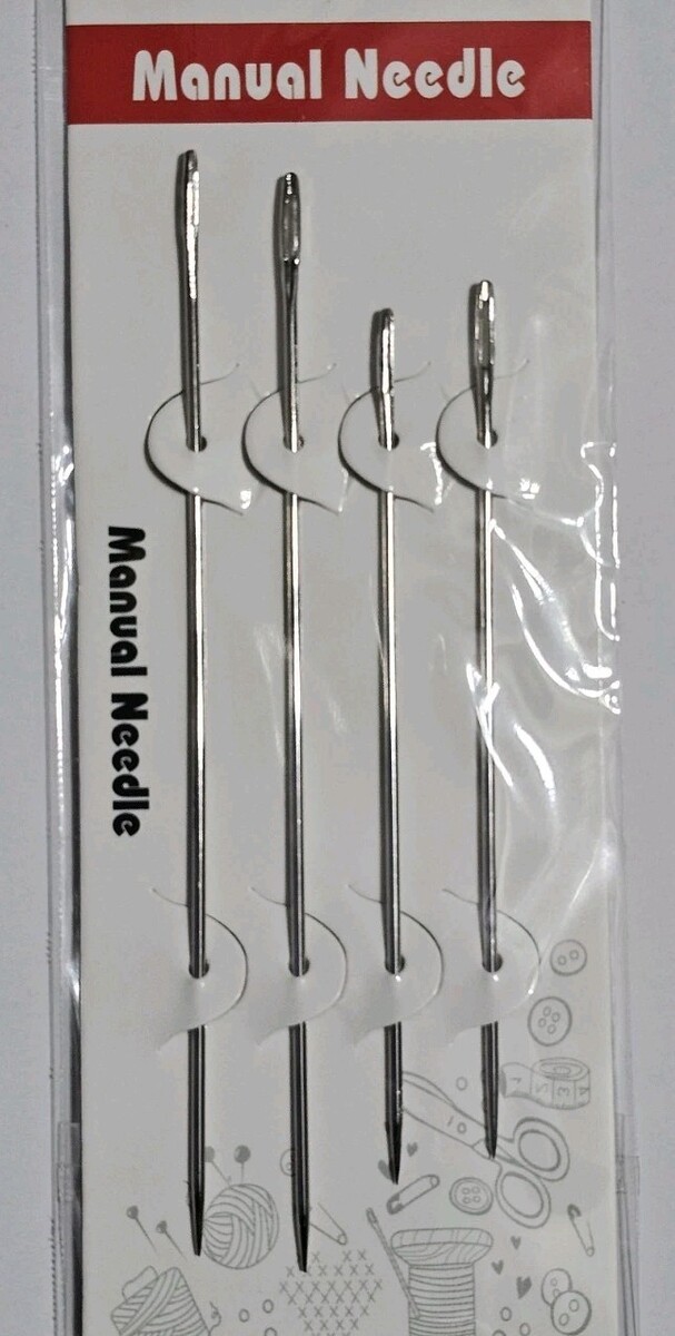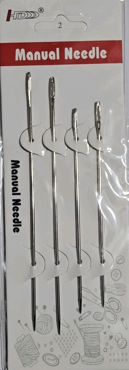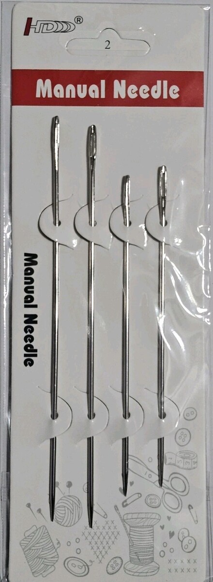 The Manual Needle Assortment by HDDD includes a variety of needles such as carpet needles and sail needles. The needles are sharp-tipped and come in a round eye shape. The assortment includes a total of eight needles, with sizes ranging from 6" x 2 to 5" x 2. Made in China, these high-quality needles are perfect for various crafting and sewing projects. Ideal for hand-sewing enthusiasts, this assortment provides the necessary tools for intricate and detailed work.