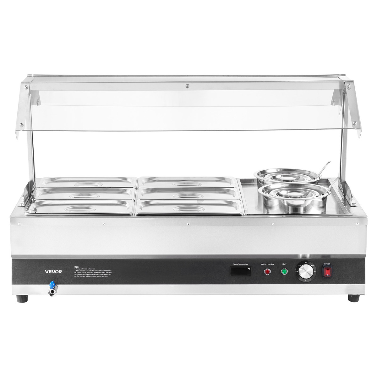 Keep Warm for a Long Time: The commercial soup warmer features a temperature range of 86-185F. The 1500W heating plate ensures rapid heating and maintains a stable temperature for perfect serving temperature