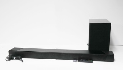 Description: Includes Soundbar, Wireless Subwoofer, Remote Control w/ Batteries, HDMI Cable. Scratches and scuffs on the bodies. Ripped fabric grill on sub.
