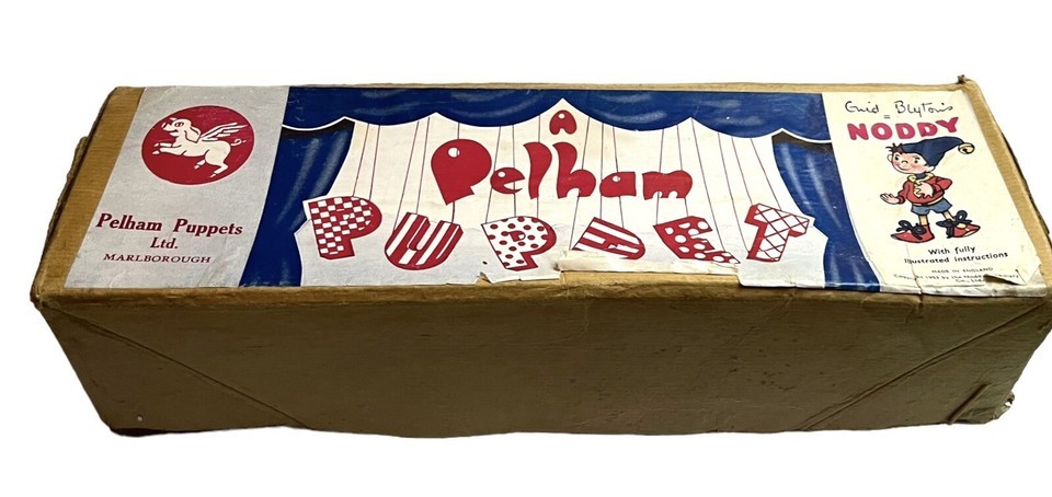 "Noddy" by Enid Blyton Pelham Puppet in the original box, with instructions on how to use the puppet, the original tissue paper and a letter from "Pelpop" invitation to join "The Pelpup Club"