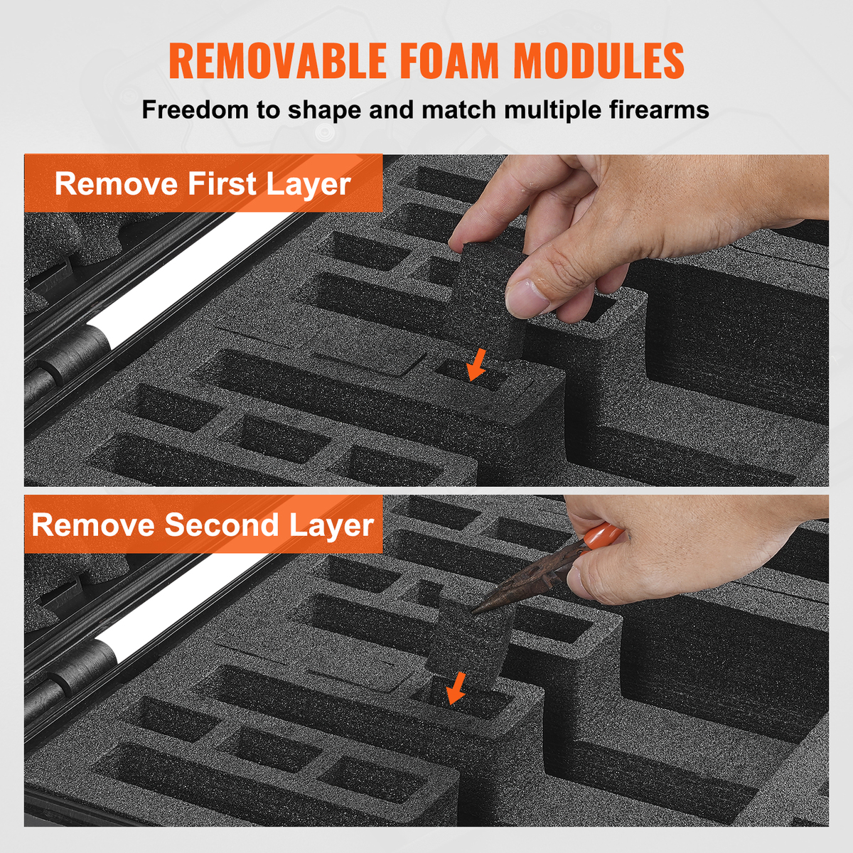 Versatile XPE Module: To ensure a precise fit with handguns of various sizes, we've integrated height and length adjustable XPE modules. This feature ensures that even the smallest handguns fit snugly like full-sized ones, making it perfect for storing most handgun models and accessories such as goggles, holsters, gloves, and ammunition, offering an ideal storage and travel solution.