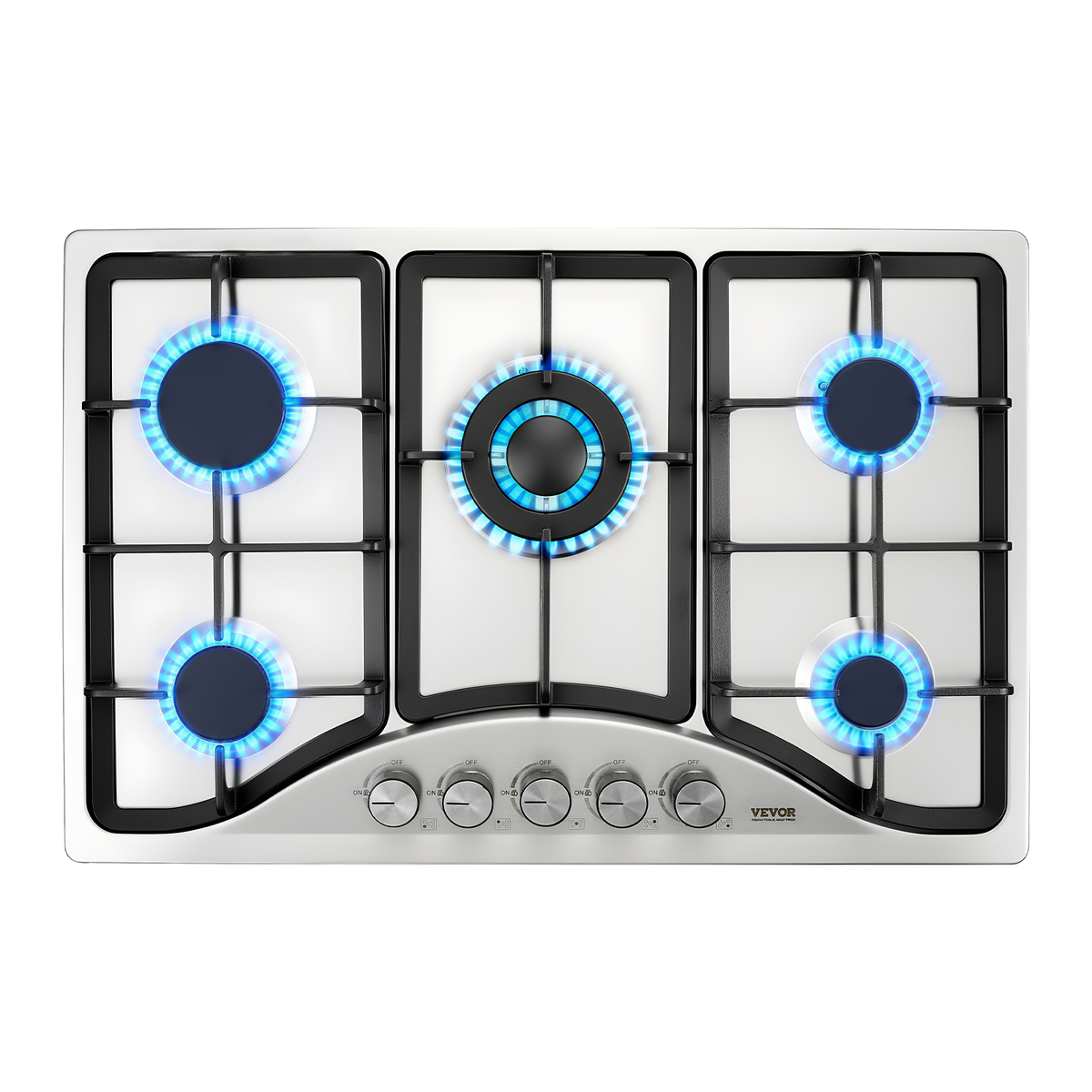 Highly Efficient Heating: VEVOR 30" built-in gas cooktop features 5 burners with different power levels: 3750BTU, 2 x 6400BTU, 10200BTU, and 12250BTU. 12250BTU maximum power and 52% higher thermal efficiency ensure efficient and fast heating. Whether you are simmering or boiling, you can quickly complete your cooking with even heat distribution, and enjoy a delightful cooking experience.