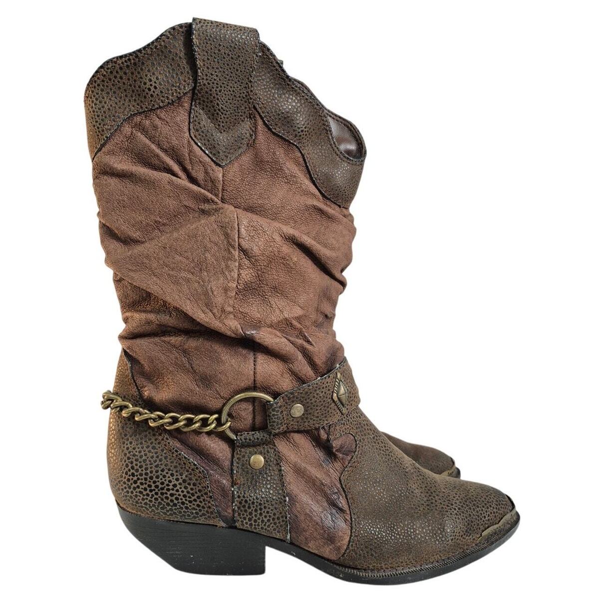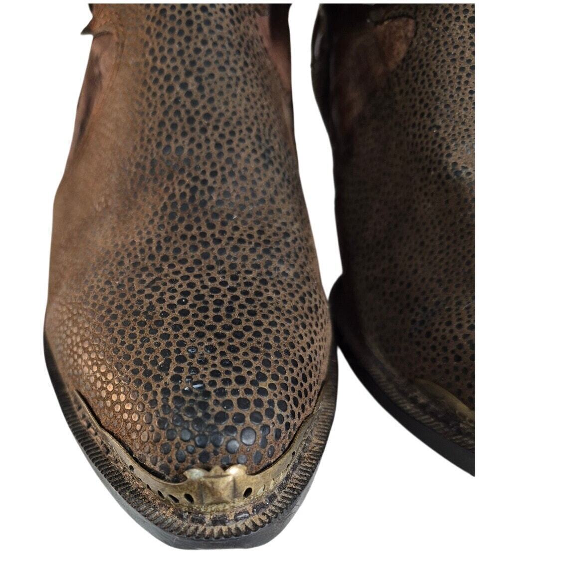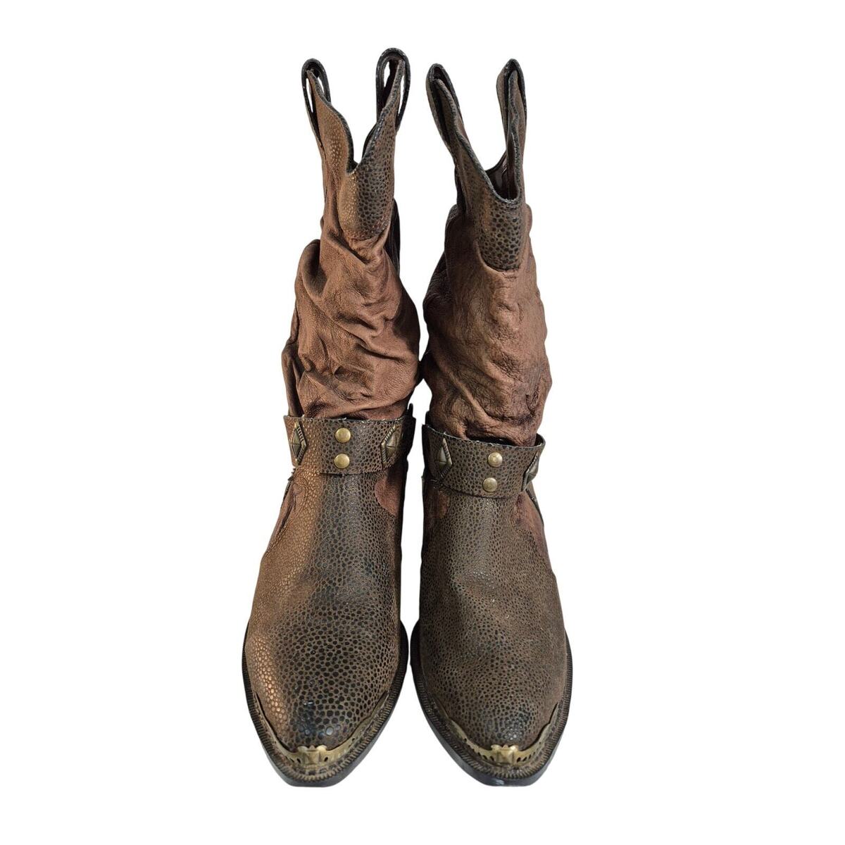 The Leather Collection Brown Coastal Cowgirl Leather Boots Sz 7.5 Brass Trim