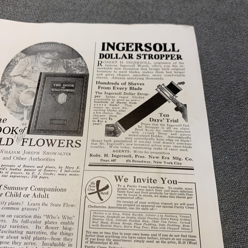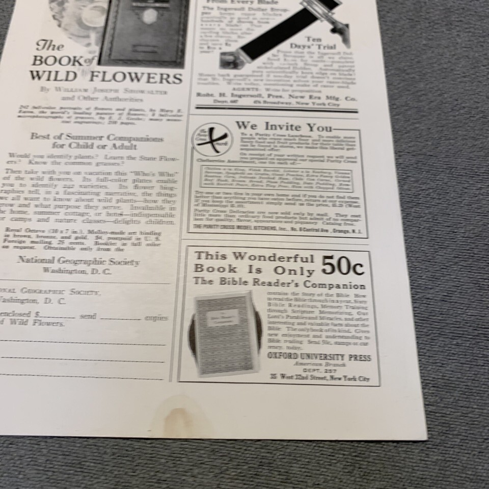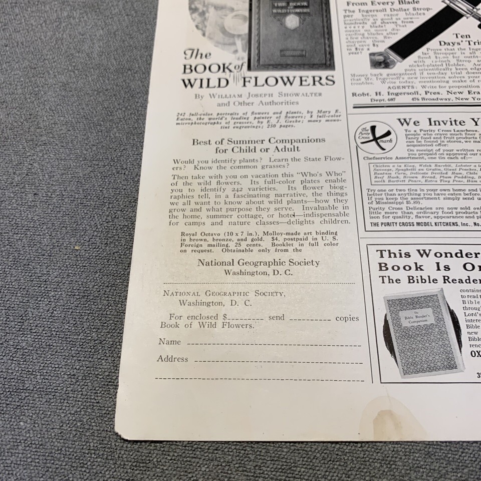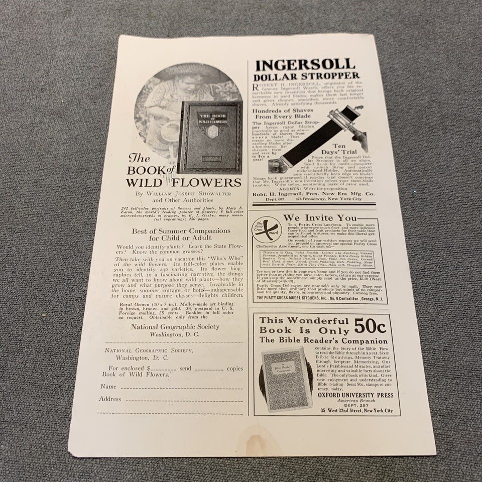Super cool and rare print ad that was in the National Geographic from November 1919. Page is beginning to yellow. Some wear and tear around the corners and edges. Some spotting and stains are visible. Please see pictures for details.