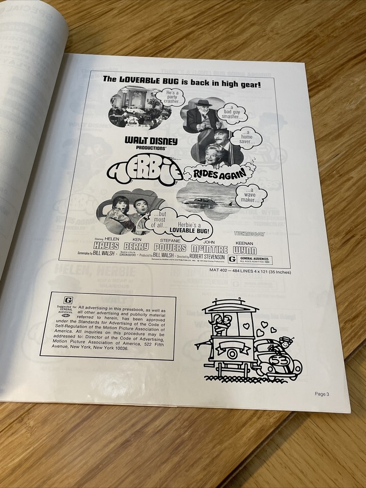 Vintage Disney Herbie Rides Again 1974 Movie Poster Press Kit Vintage Cinema KG