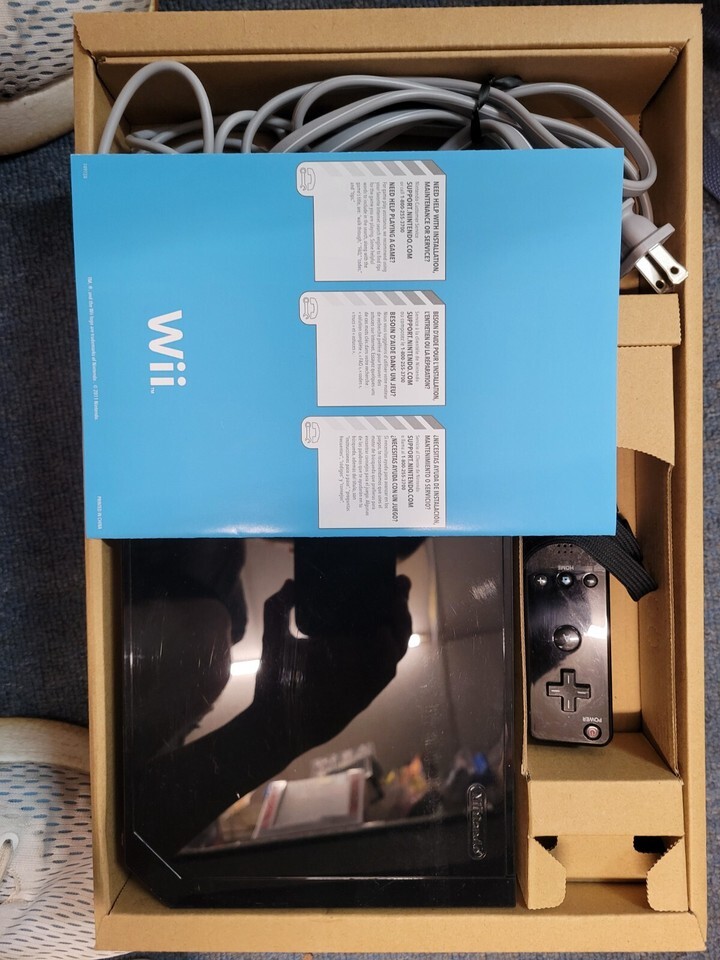 Complete in box w/ games, cords, one black controller a white nunchuk. Tested and cleaned before shipping! Box is in great condition.