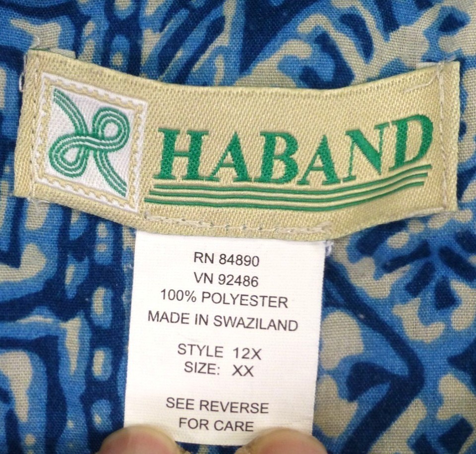 Haband Mens XX Blue Geometric Print Short Sleeve Button-Up Shirt Made In Swazila