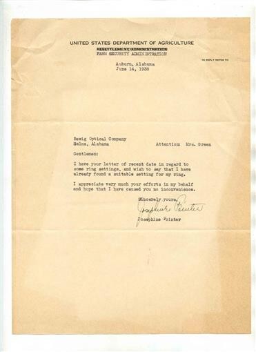 United States Department of Agriculture Letterhead Auburn Alabama 1938