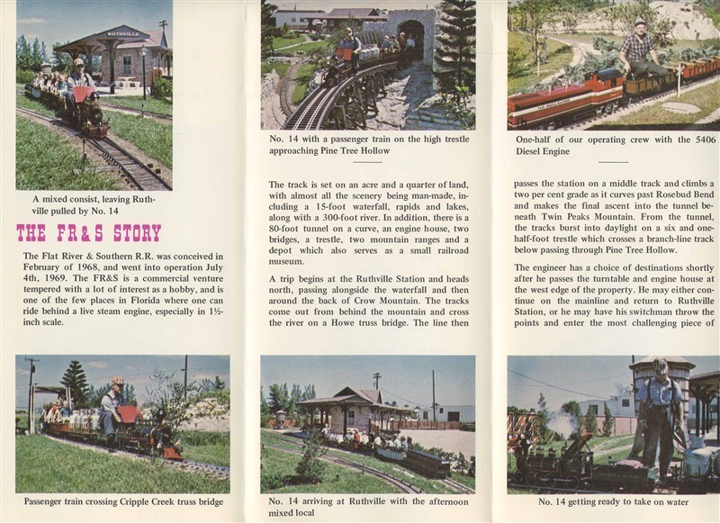 A full color illustrated 6 panel fold out brochure with photos, The FR S Story , Maps, Schedule, Fares and more. Flat River Southern Railroad Brochure . Located in North Palm Beach Florida