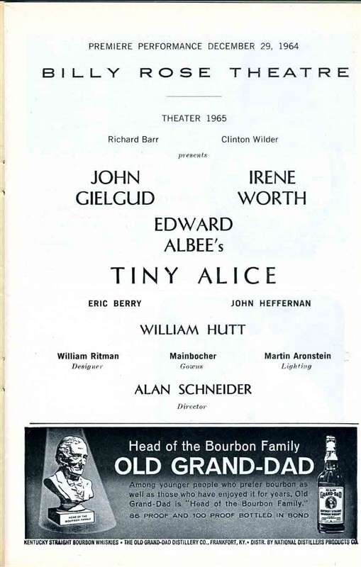 Playbill Tiny Alice Premiere Performance John Gielgud 1964 Irene Worth