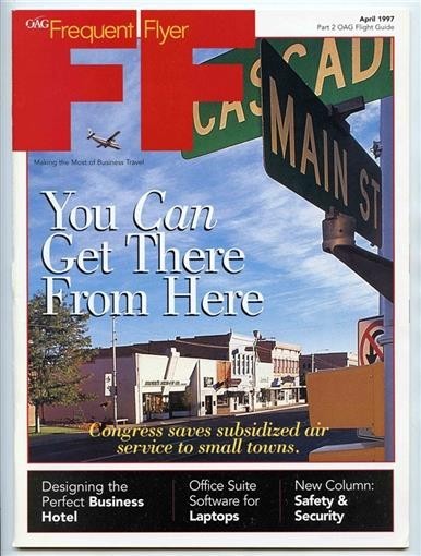 OAG Frequent Flyer Magazine. The 50 page April 1997 issue . This was part 2 of the OAG monthly guide. With cover and feature article on You Can Get There From Here , Plus Perfect Business Hotel, Laptops, Safety Security and more articles