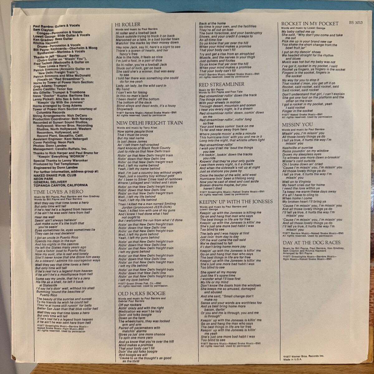 Little Feat Time Loves a Hero Vinyl LP WB BS 3015 Old Folks Boogie VG+ 1st Press