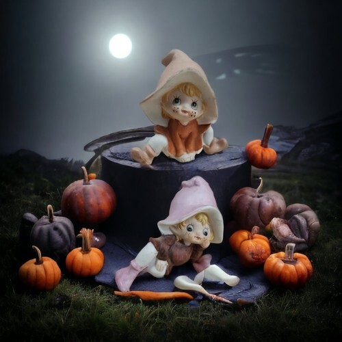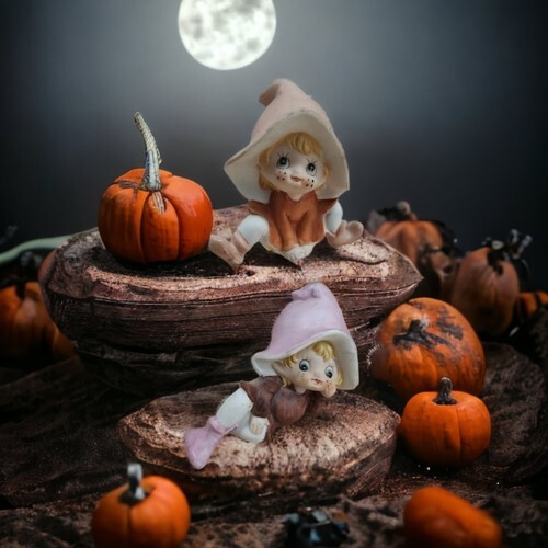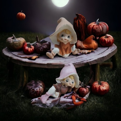 Set of 2 Vintage Homco Home Interiors 5213 Flower Pixie Elf Fairy Figurines
