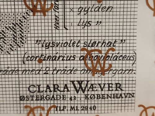 1960s Clara Waever Counted Cross Stitch Nr 26-3284c Mushroom Lysviolet Slorhat