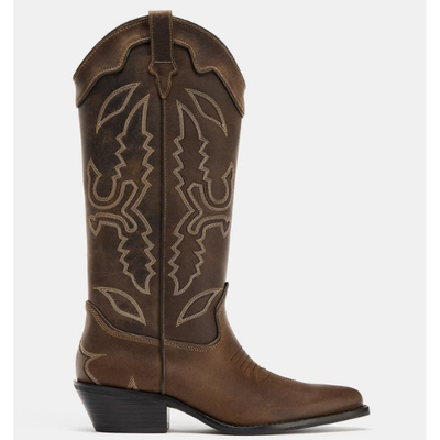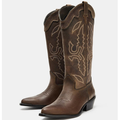 ZARA BNWT 2026. BROWN REAL LEATHER COWBOY BOOTS. 3003/710/700