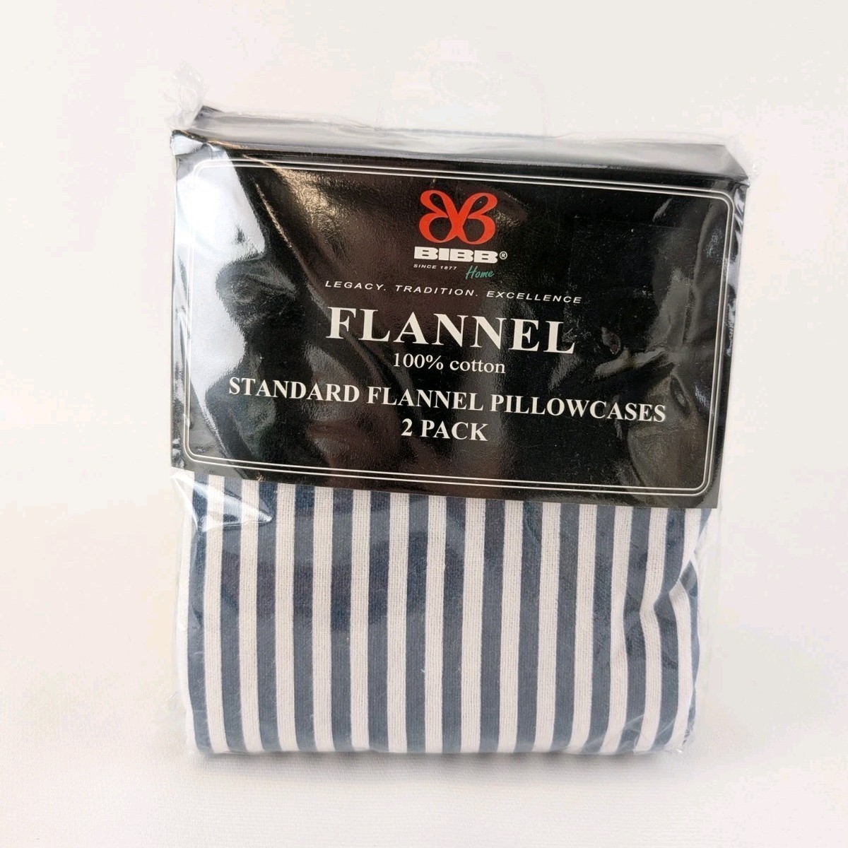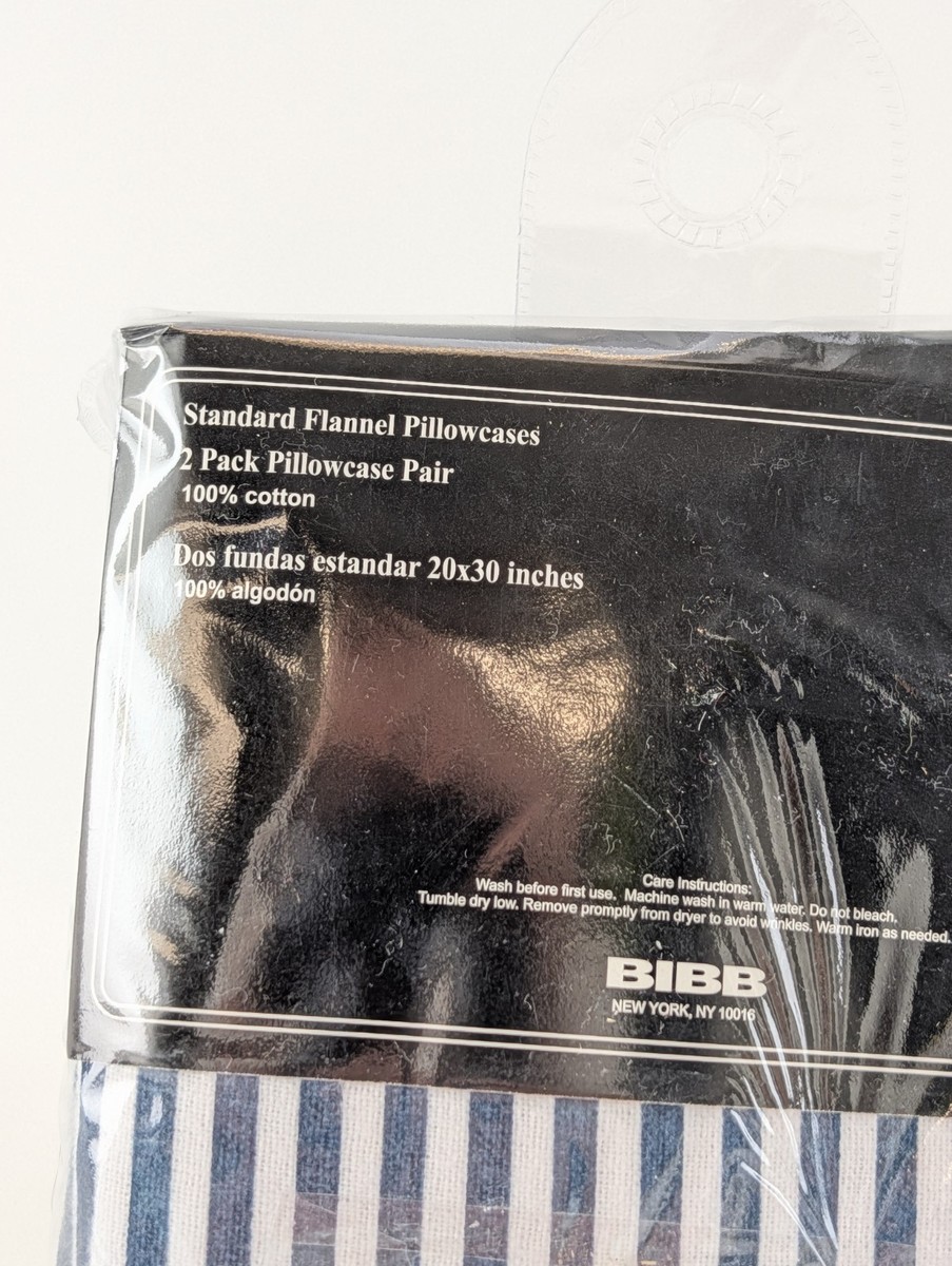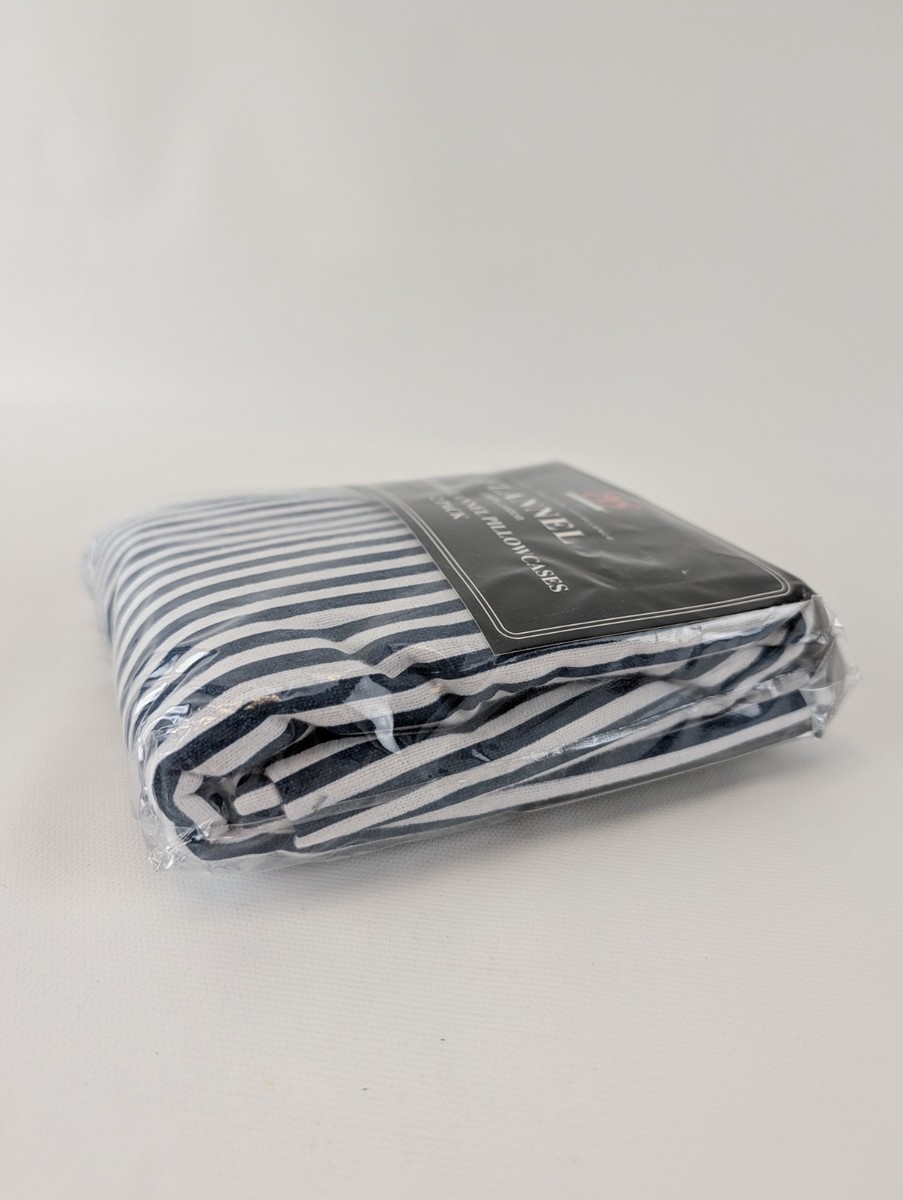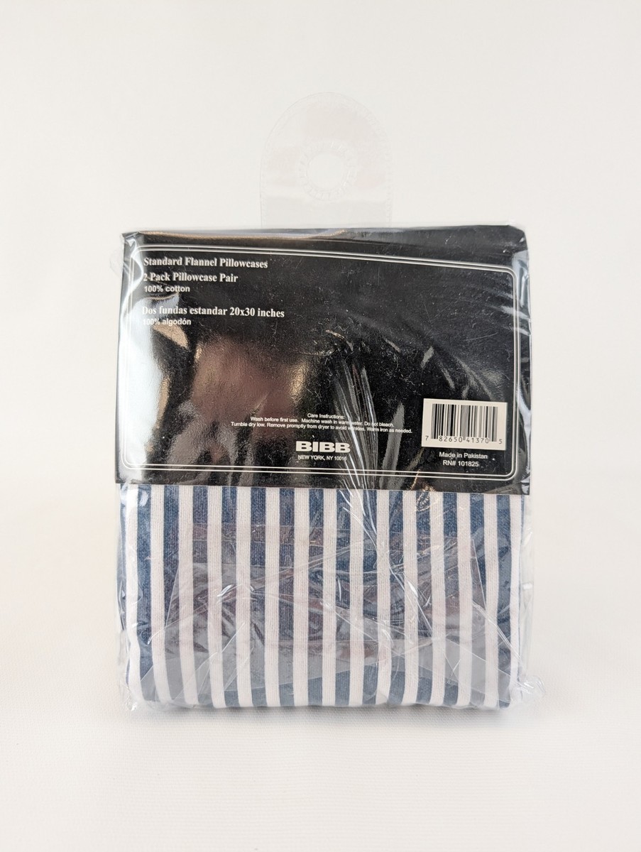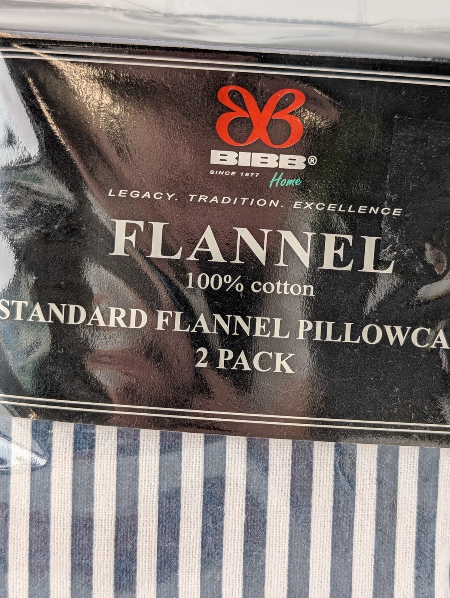 Bibb Home 2 Pack Flannel Pillowcases Standard 20x30 100% Cotton Blue Stripe New. Condition is New with tags. Shipped with USPS Ground Advantage.