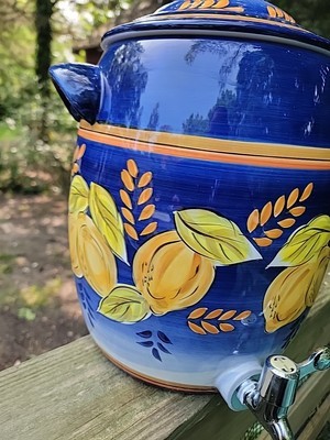 The Palermo Samovar with Lid by Z Gallerie is a stylish and functional Iced tea pot made of stoneware and ceramic materials. Its striking blue color adds a touch of elegance to your tea and coffee brewing experience. With the Z Gallerie brand known for its quality and design, this samovar is sure to be a stylish addition to your kitchen or dining area.