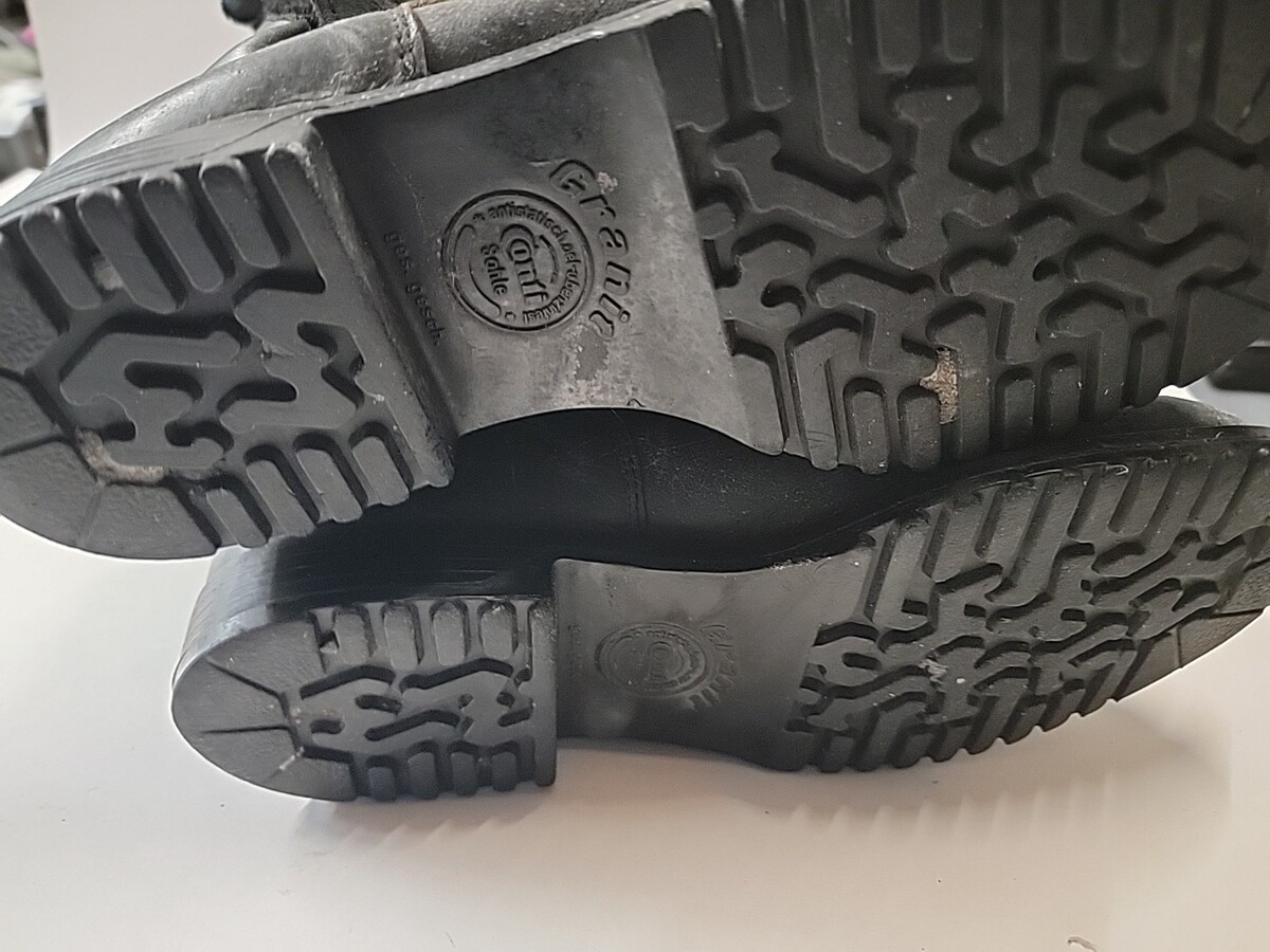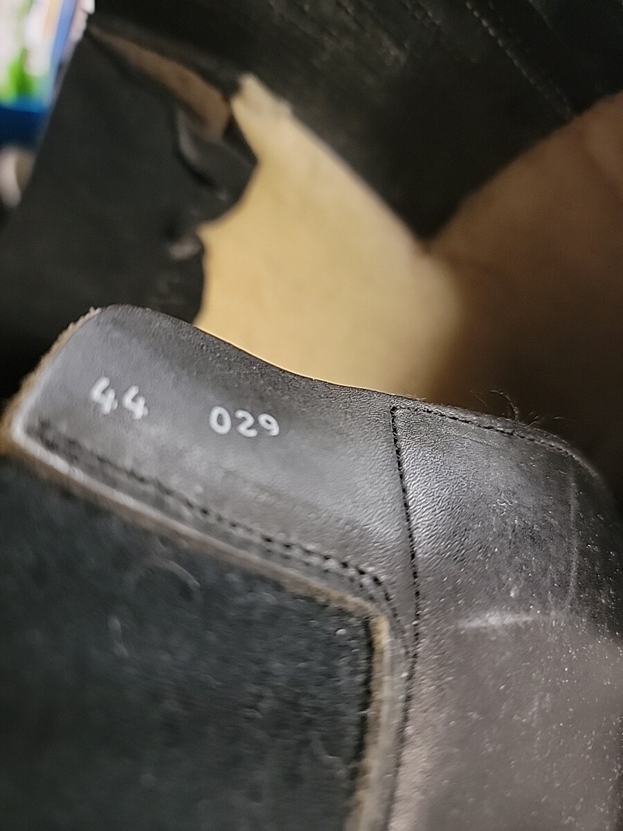 There was a deep gouge on the top of one of the boots that was repaired with shoe goo glue and they do have scrapes and marks but they are very cool and vintage and they are ligned with a wool type material I can't find much information on these so I'm listing what I can see inside it says 44 029 which I believe the 029 is the height please see pictures for exact details and condition