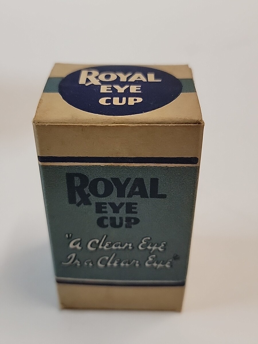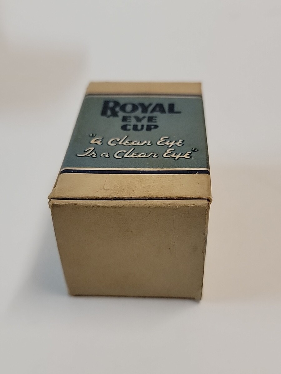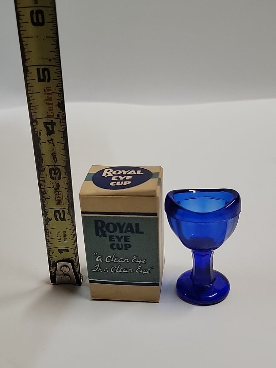 Antique Royal Glass Eye cup cobalt blue in original box