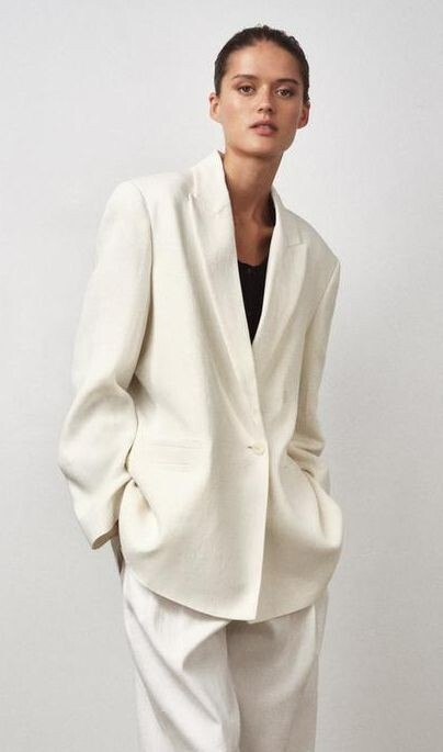 NWT $199 ZARA WHITE LINEN BLEND DOUBLE BREASTED BLAZER JACKET ZW COLLECTION MEDIUM BUT RUNS BIG- THE LOOK~