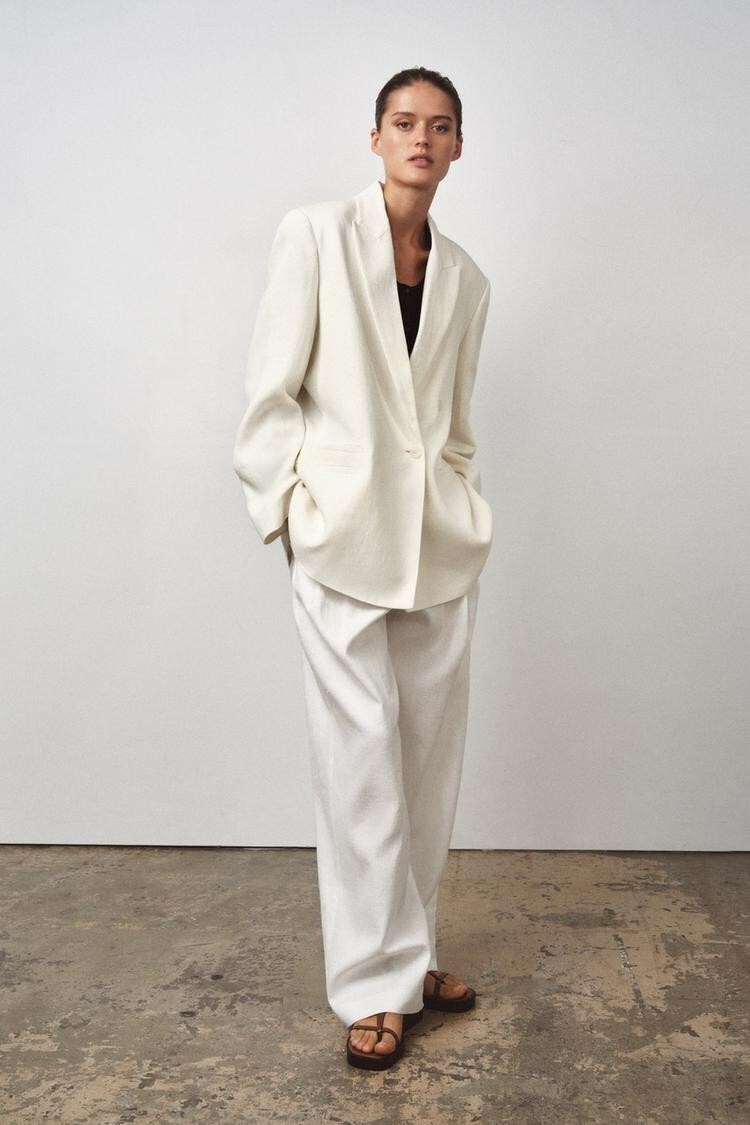 NWT $199 ZARA WHITE LINEN BLEND DOUBLE BREASTED BLAZER JACKET ZW COLLECTION M-L