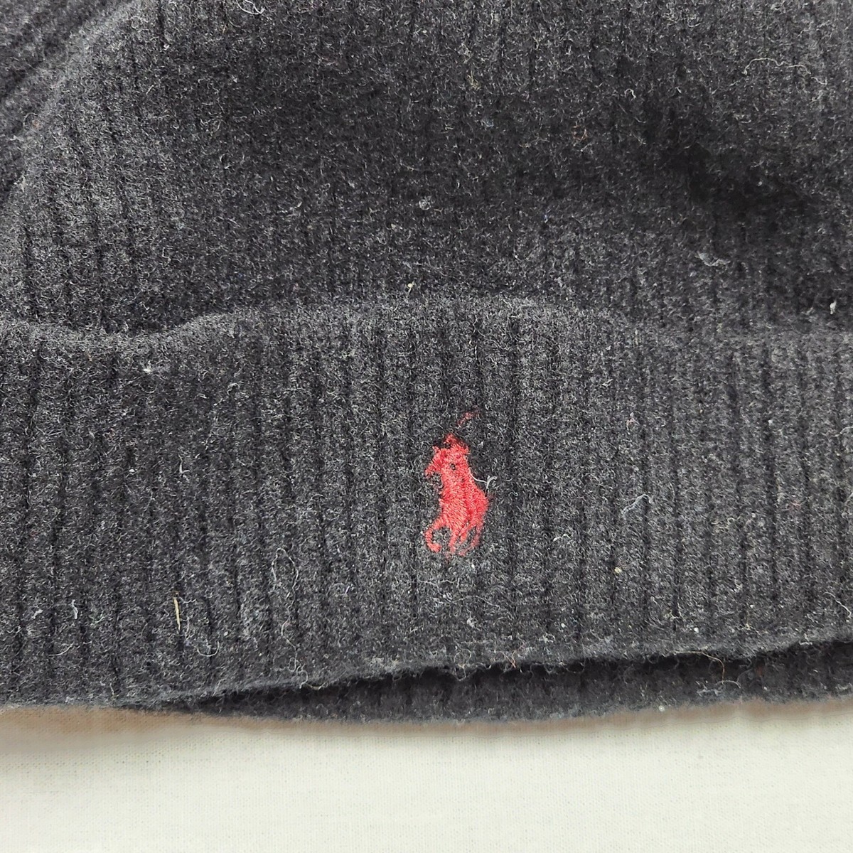 Polo Ralph Lauren Black 100% Lambswool Beanie Hat with Red Pony Logo