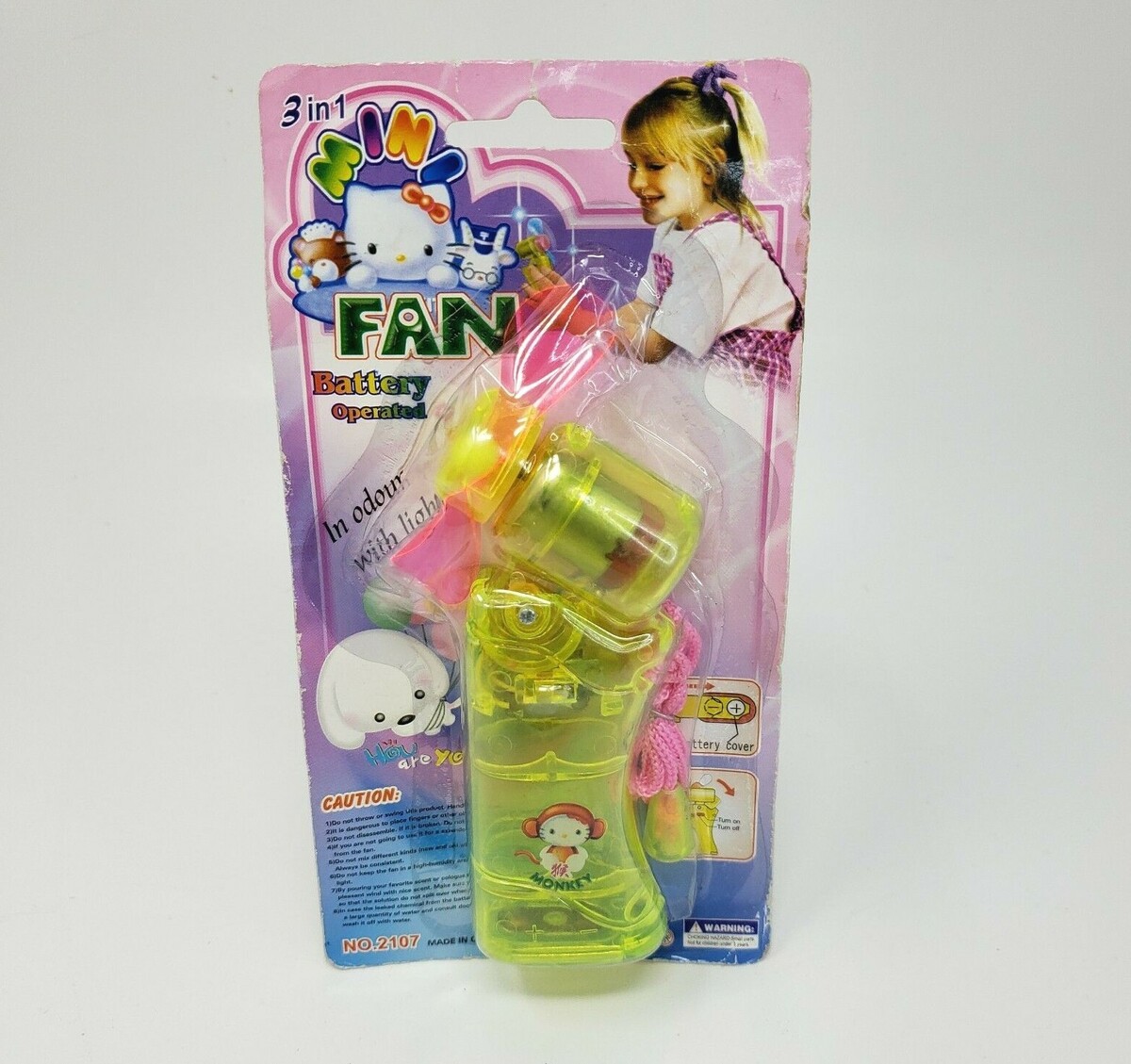 VINTAGE MINI FAN BATTERY OPERATED HELLO KITTY STYLE NEW IN PACKAGE BOOTLEG KO