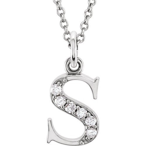 14k White Gold 0.025ct Diamond 0.40" Letter S Pendant 16" Initial Necklace