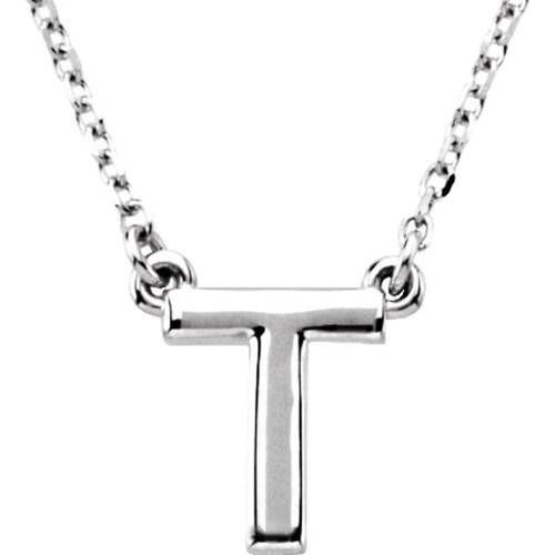 Authentic 925 Sterling Silver 0.39" Block Font Letter T 16" Initial Necklace