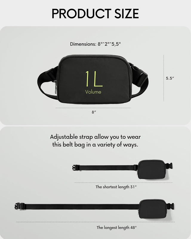 Versatile Style: Adjustable Strap allow you to wear this belt bag in a variety of ways. It can be carried as cross bag, shoulder bag, waist bag or handbag. It?s all up to you.